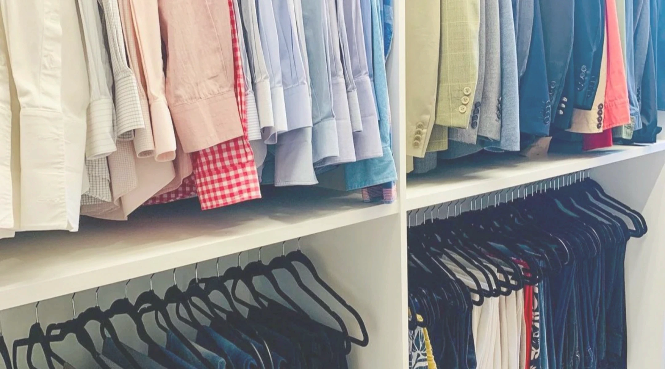 Organizamos roupas, sapatos e acessórios de forma funcional.